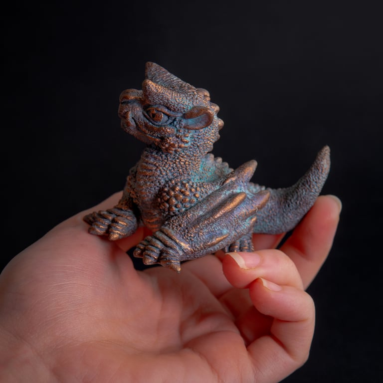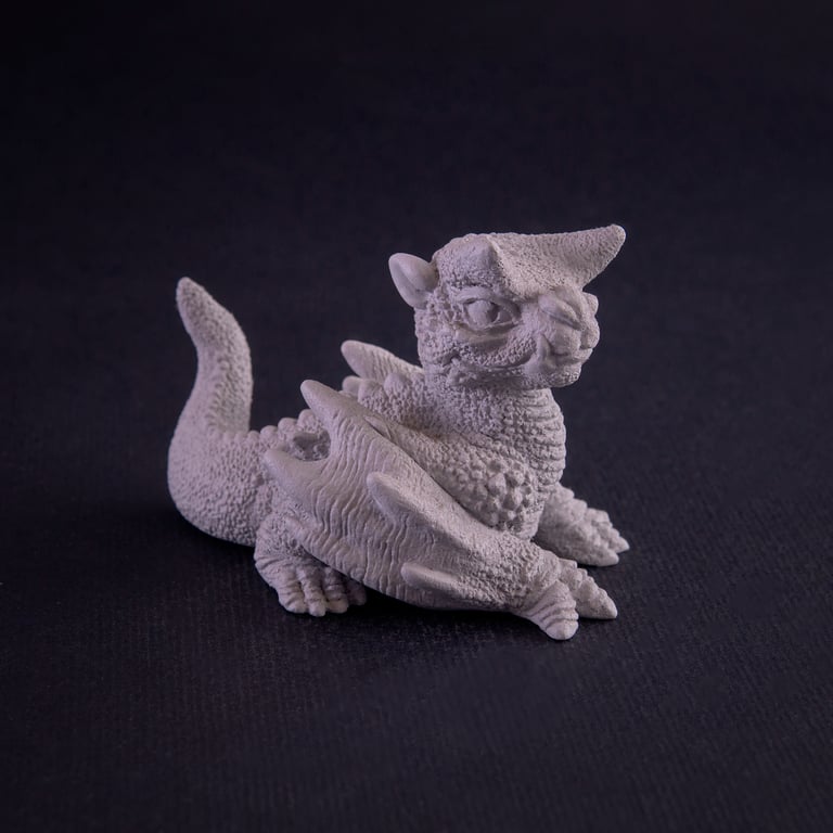 Polyurethane resin cast of Ignigrum Ferox, a dragon figurine from the Ouroboros collection, the Book of Dragons.